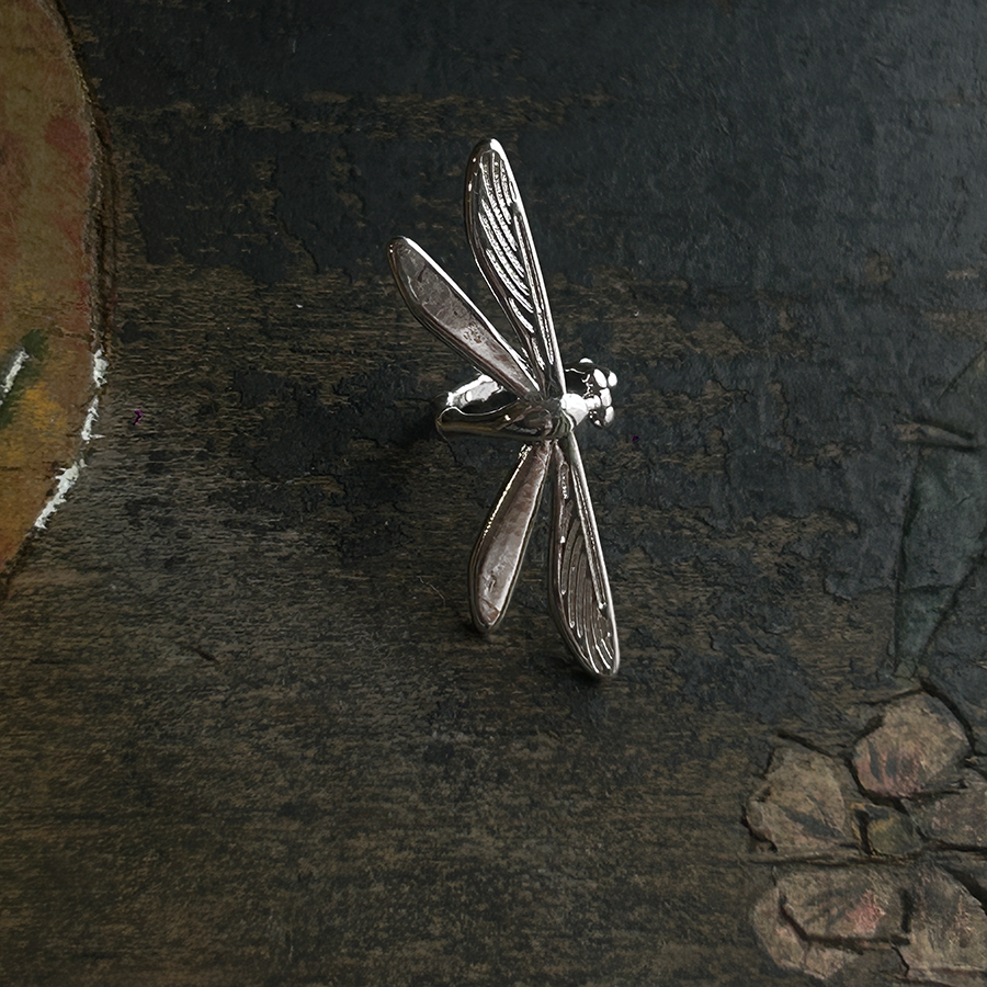 Clip para la oreja con delicado diseño de libélula para usar sin necesidad de perforación. Acero plateado con acabado brillante que resalta los detalles del diseño. No pierde su brillo y no se deforma.